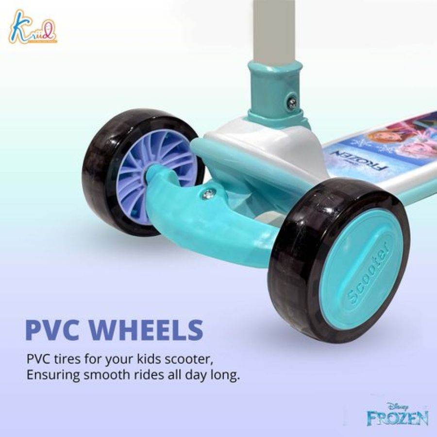 Kriiddaank Disney Frozen Adventure 3-Wheel Kick Scooter for Kids (3+ Years) - LED Light Up Wheels, Music, 3-Level Adjustable Height, Foldable Design, Anti-Slip Deck - 25kg Capacity, Turkish Blue