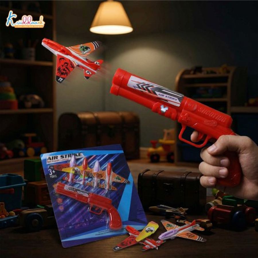 Kriiddank Air Strike Soft Bullet Gun Toy - Automatic Aircraft Launcher Blaster with 4 Foam Glider Airplanes - Safe & Fun Outdoor Shooting Playset for Kids 3+ Years Old (Multicolor)