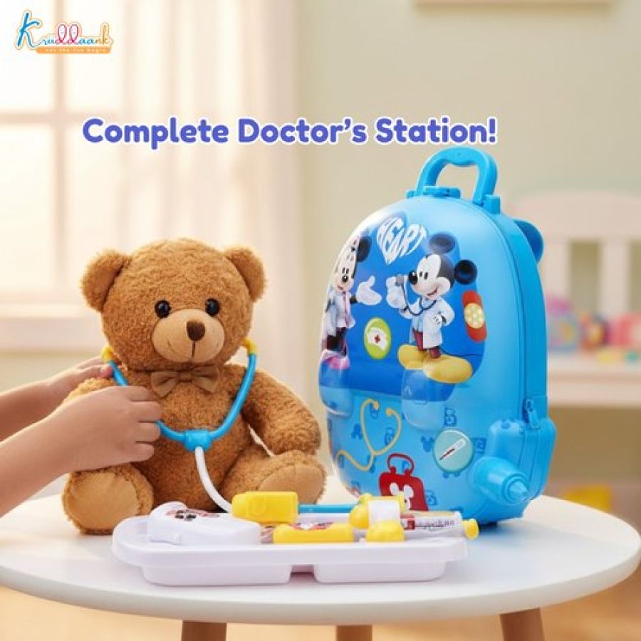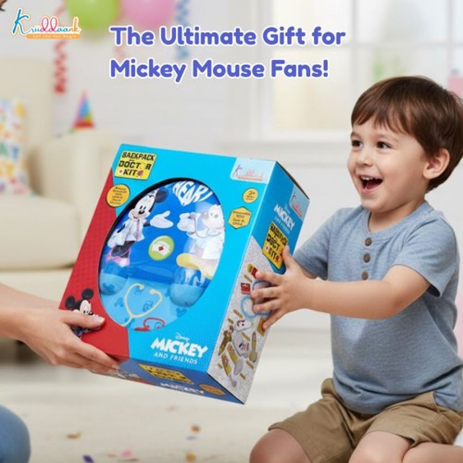 Disney Mickey Theme Backpack Doctor Gift Set for Kids - 8 Pcs Medical Kit with Interactive Light & Sound Stethoscope, Portable Educational Role Play Toy for Boys & Girls Ages 3+