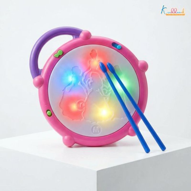 Disney Princess Flash Drum Toy for Girls - Musical Light-Up Drum with 3D LED Lights, 9 Songs & Drum Sounds, 3 Modes - Interactive Educational Toy for Kids Aged 3+ Years (Pink)
