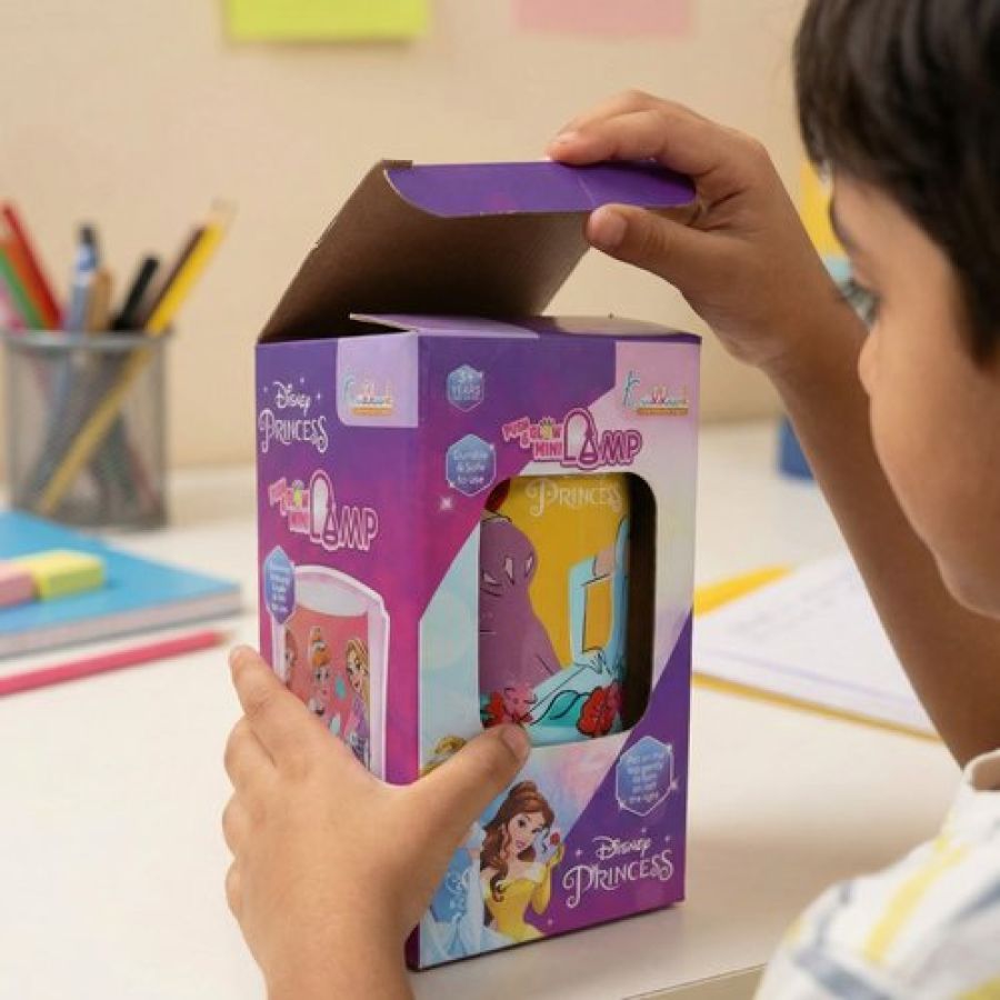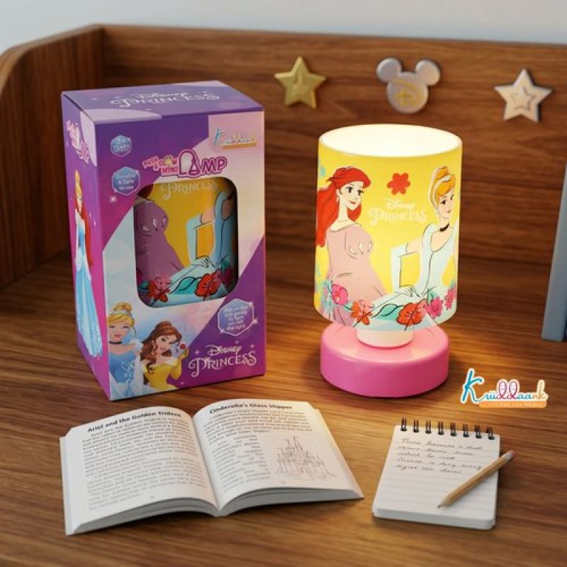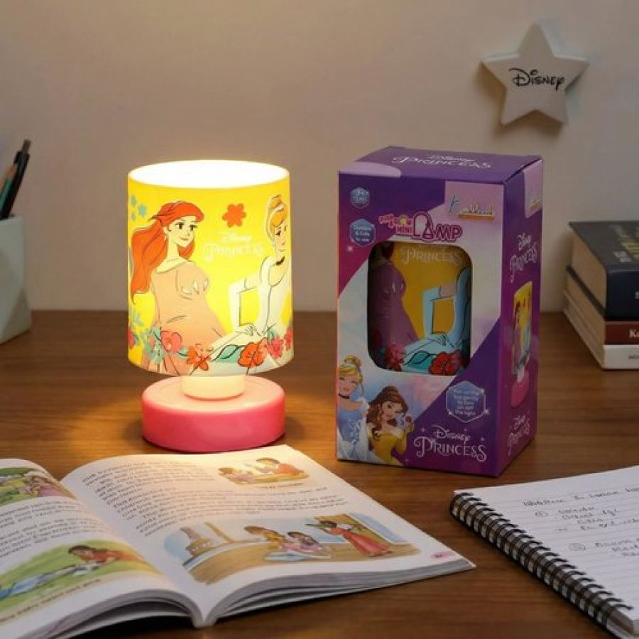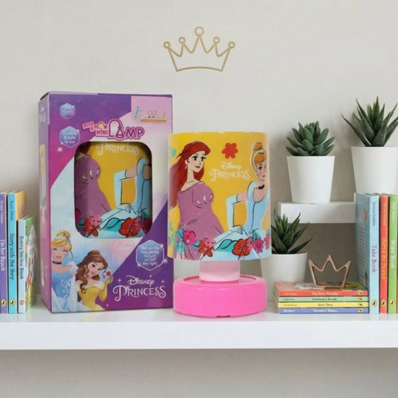 Disney Princess LED Night Light for Kids - Portable Push & Glow Table Lamp for Study, Bedroom & Decoration - Safe, Battery-Operated Desk Light for Girls, 3+ Years (Pink/Multicolour)