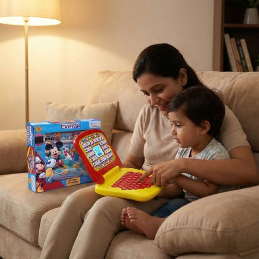 LTS Mickey Mouse Theme Educational Laptop for Kids - Interactive Preschool Learning Toy with Alphabet, Numbers & Word Pronunciation, Battery Operated English Computer for Boys & Girls 3+ Years