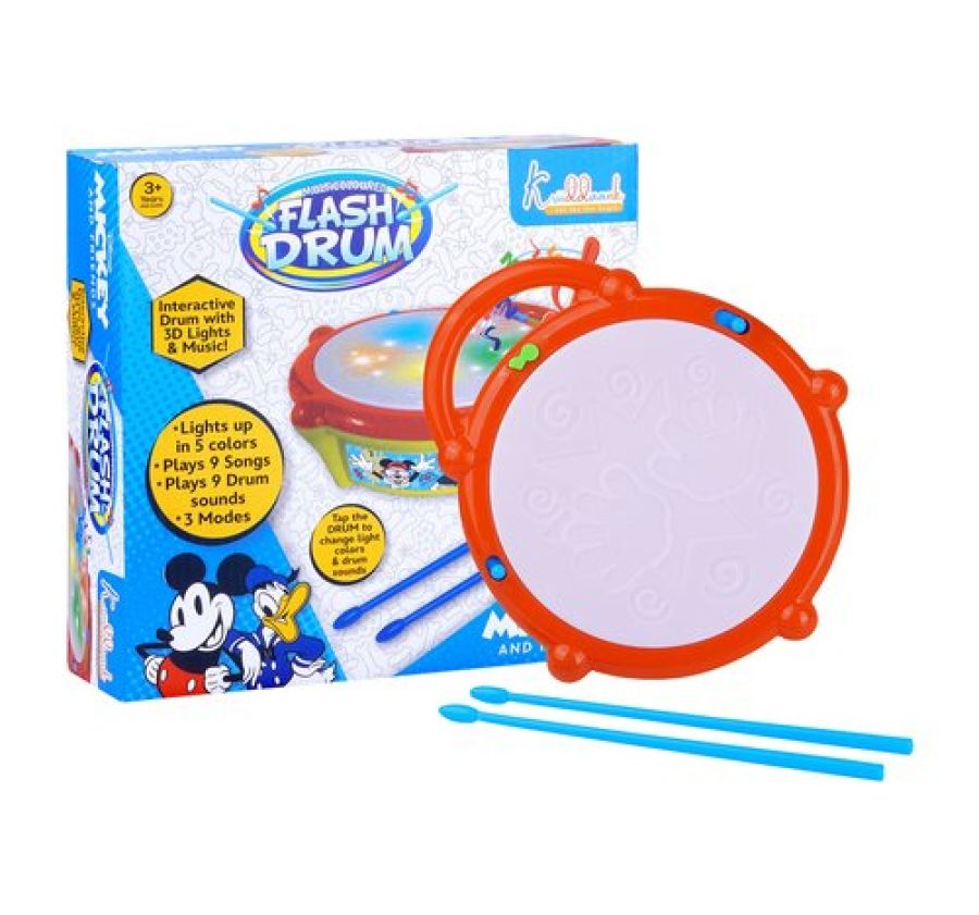 Disney Mickey Mouse Flash Drum Musical Toy for Kids - Interactive 3D Lights, 9 Songs & 9 Drum Sounds, 3 Play Modes - Educational Musical Instrument for Toddlers 3+ Years