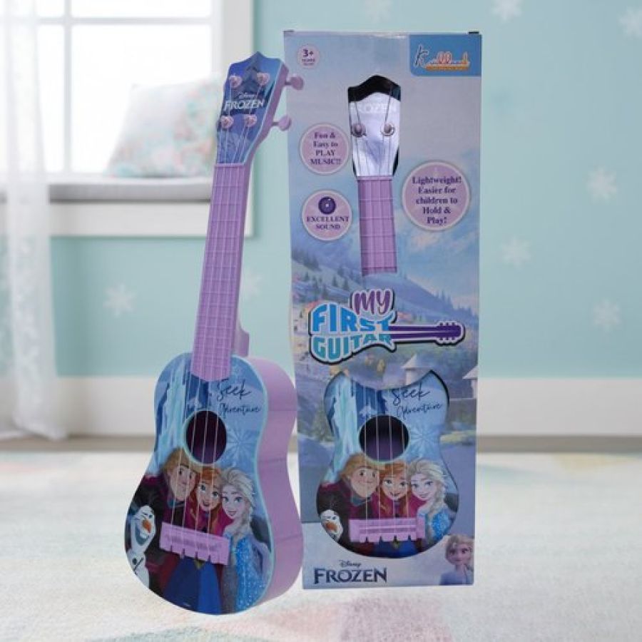 Frozen Elsa & Anna Big Toy Guitar for Girls - 4-String Adjustable Acoustic Musical Instrument with Pick - Lightweight & Portable Educational Toy for Kids Age 3+ Years, Turkish Blue
