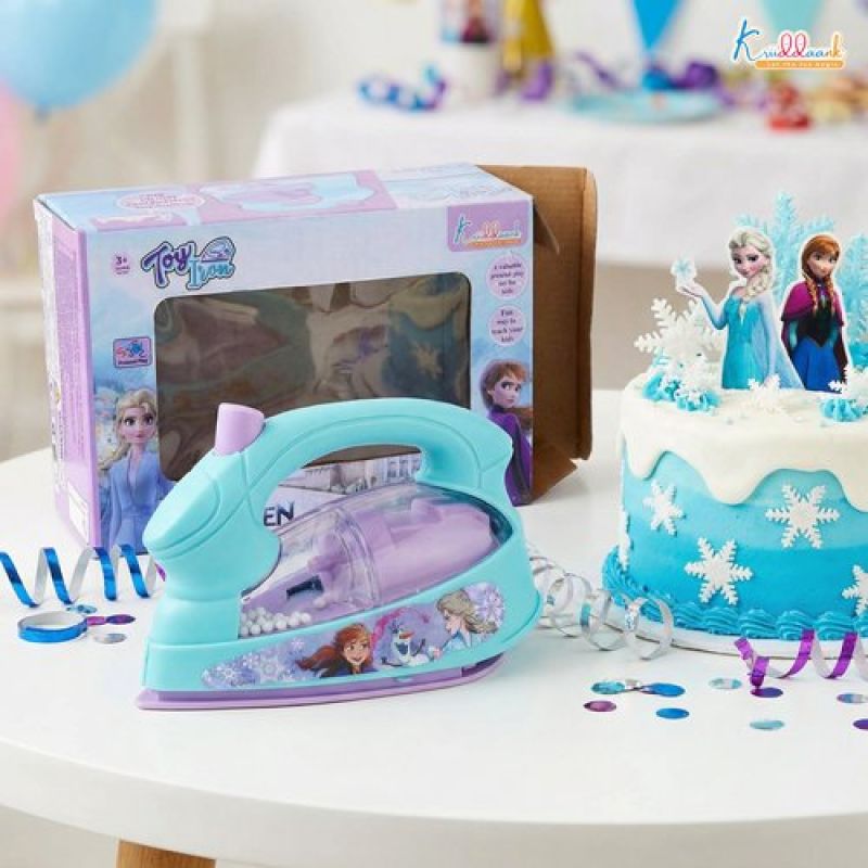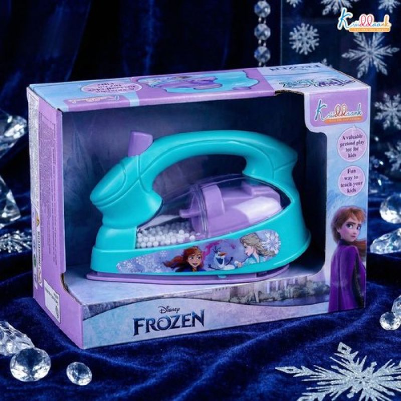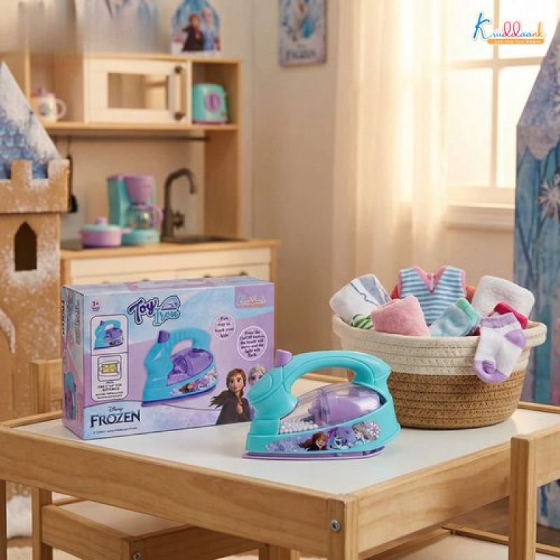 Introduce your child to the world of creative role-play with the Frozen Household Press Iron. Designed with a beautiful Turkish Blue finish and inspired by the beloved Frozen aesthetic, this toy iron makes household chores feel like a magical adventure. When the On/Off button is pressed, the internal beads dance around and the built-in light flashes, creating a realistic experience that captivates young minds. Measuring 12 x 4 x 7.5 cm, it is perfectly sized for small hands, helping to develop motor skills and coordination through active play. Made from durable, child-friendly materials, it�s a safe and educational addition to any play kitchen or laundry set. Requires 2 AA batteries (not included) for interactive vibrating and light-up fun!