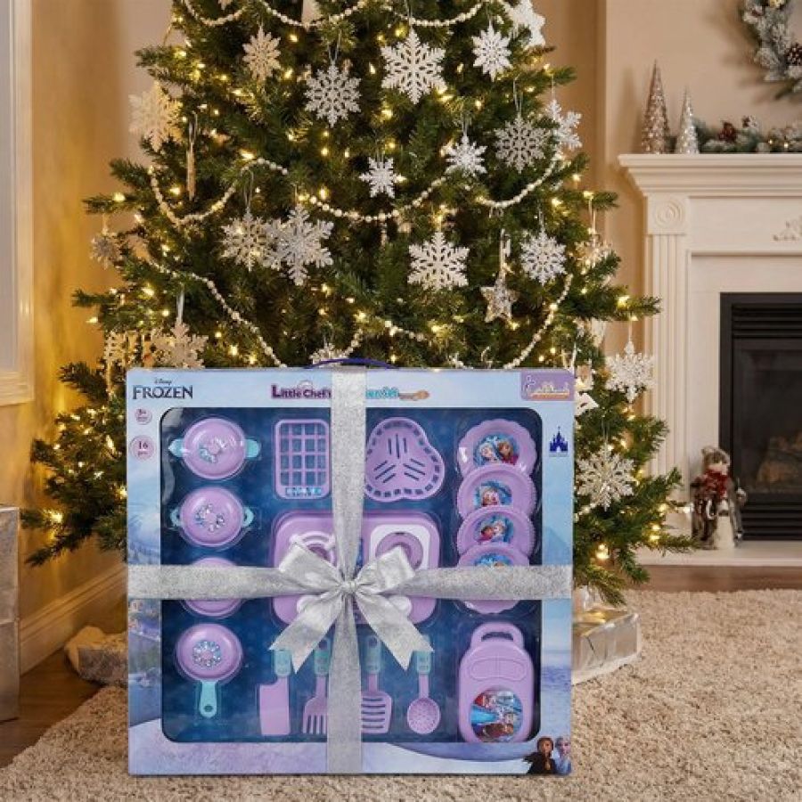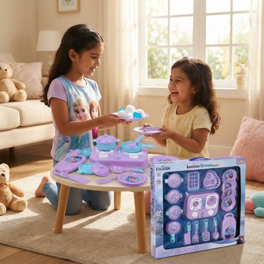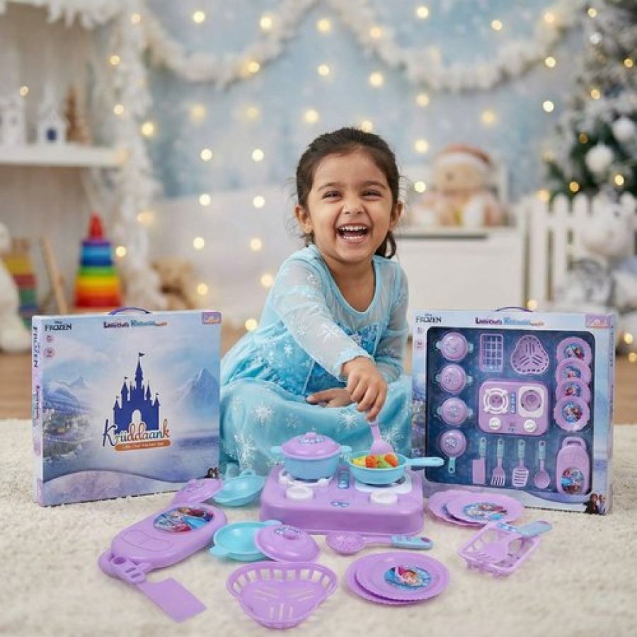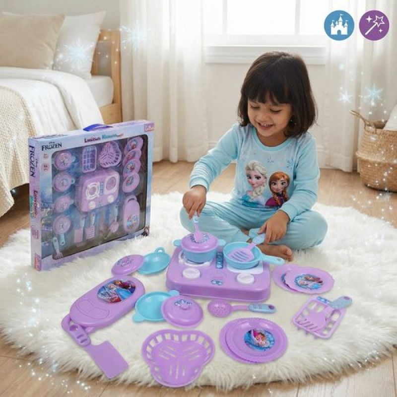 Kriiddaank Frozen Little Chef Kitchen Set for Kids - 16 Pcs Pretend Play Cooking & Baking Toy with Lights & Music, Portable Kitchen Playset for Toddlers & Girls Age 3+ Years (Multicolor)