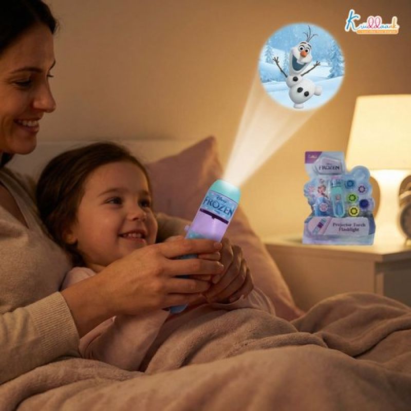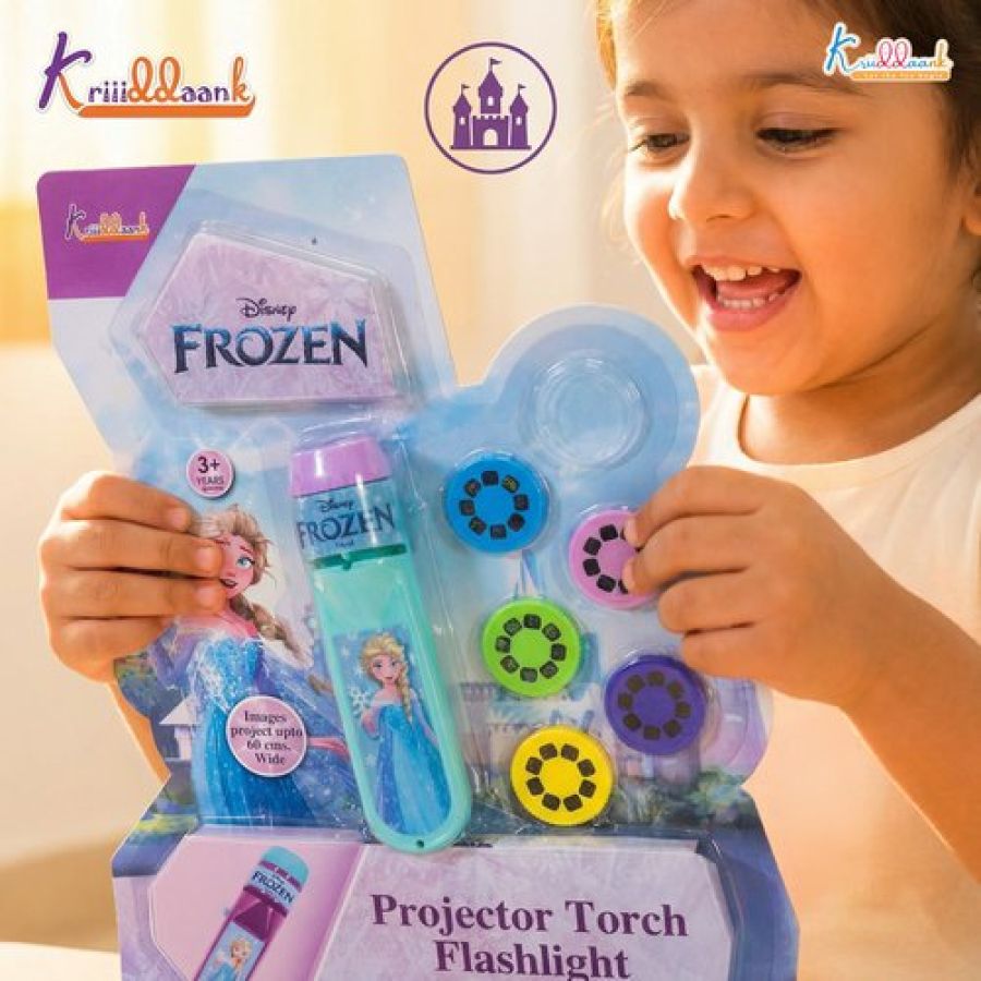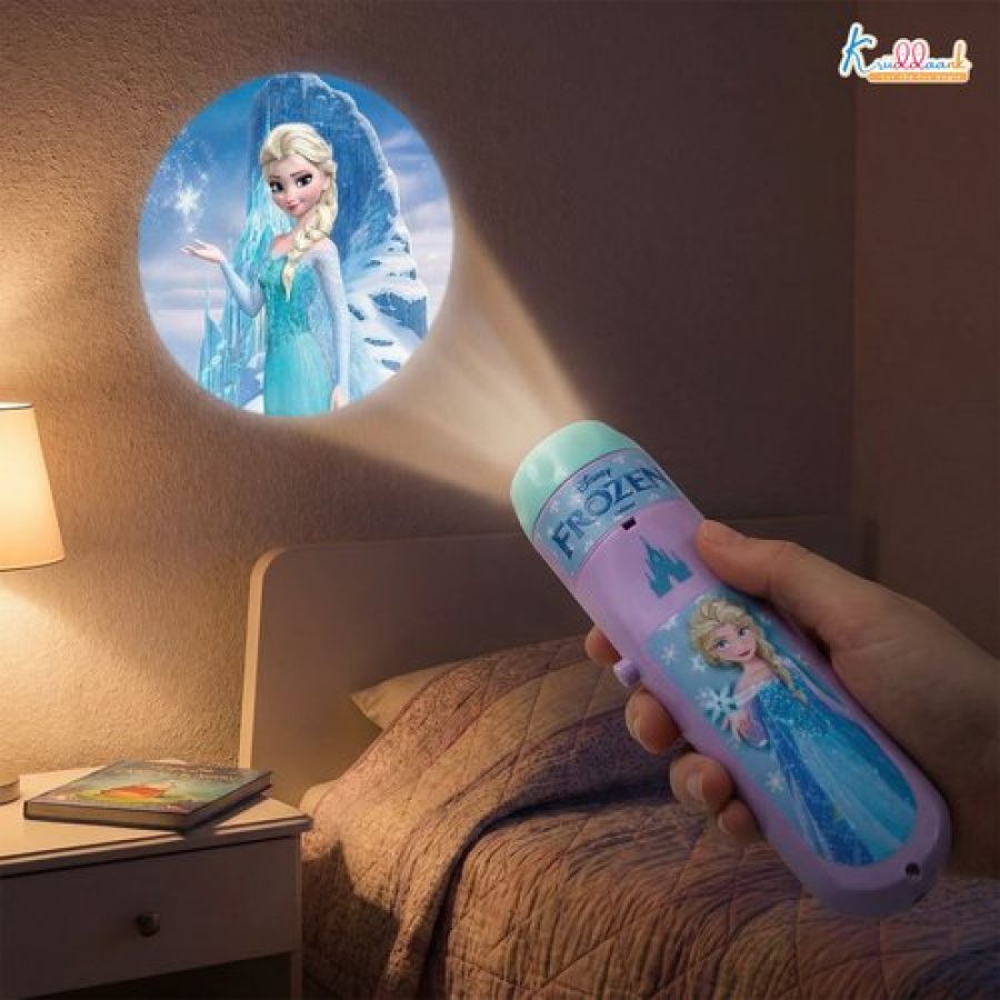 Frozen Projector Torch - Handheld Battery Operated LED Flashlight with Elsa & Anna Projections, 3 Slides & 24 Patterns, Creative Drawing & Tracing Toy for Kids 3+