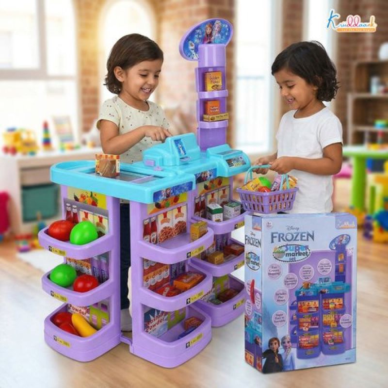 Frozen Supermarket Set for Kids - Grocery Store Playset with Electronic Cash Register, Scanner, Sound & Music, 20 Accessories | Elsa & Anna Disney Theme Toy for Kids Ages 5+ (Turkish Blue)