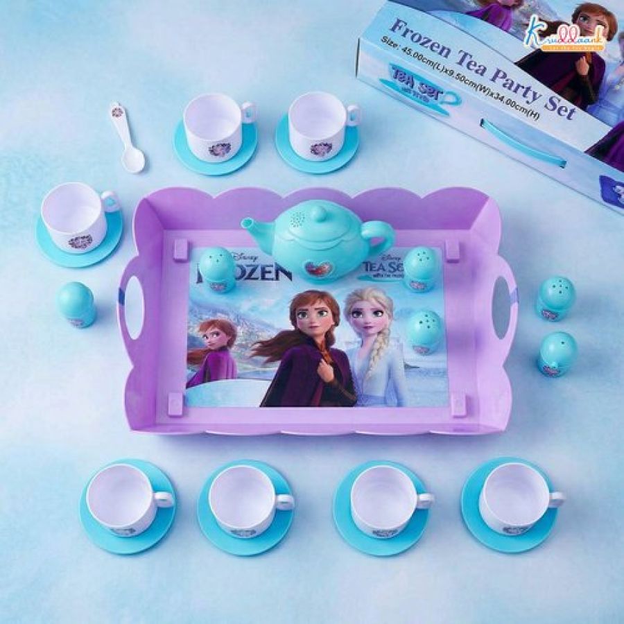 Frozen Tea Party Set for Girls - Elsa & Anna 15-Piece Trolley Playset with Electronic Kettle, Realistic Boiling Sounds & Lights - Interactive Pretend Play Kitchen Toy for Kids Ages 3+