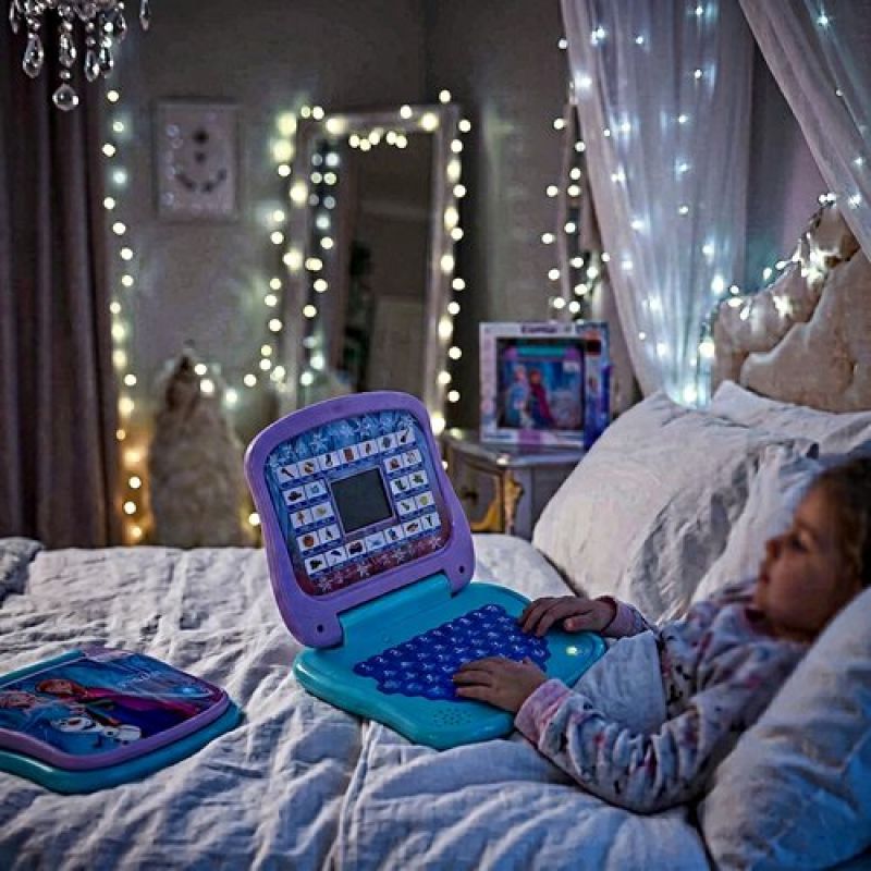 This Frozen-themed educational laptop for kids is designed to make early pre-school learning joyful and engaging. It includes foundational activities like alphabet learning, word writing, spelling pra