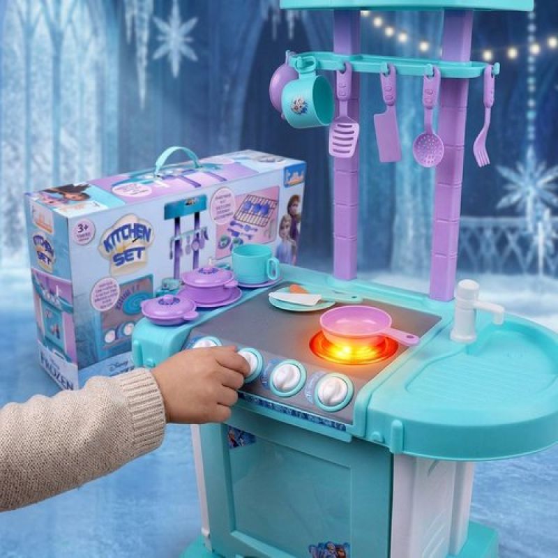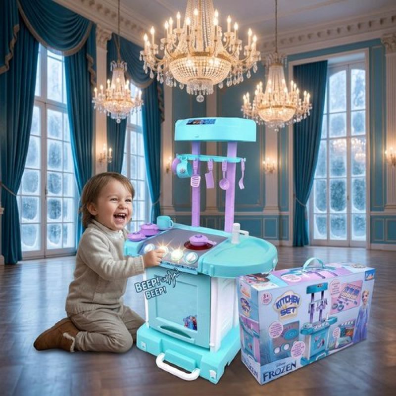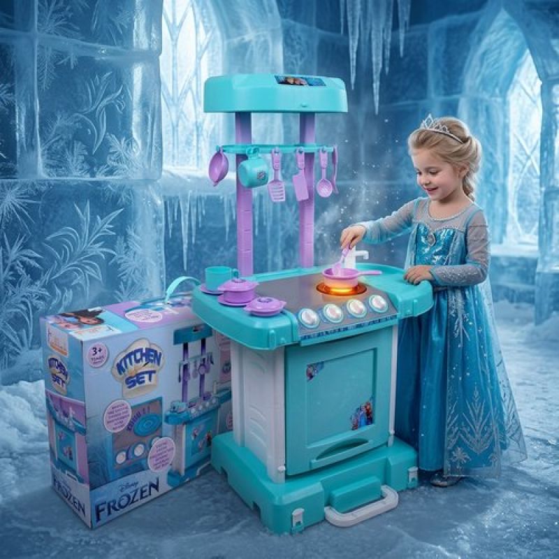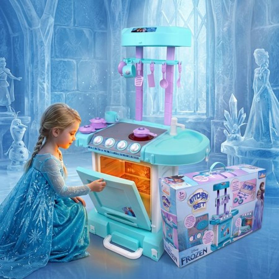 Kriiddaank Frozen Theme Kitchen Set for Kids - Interactive Cooking Playset with Oven, Sink, Lights & Sound - 18 Pcs Chef Accessories, Turkish Blue, Pretend Play Toy for Boys & Girls 3+ Years