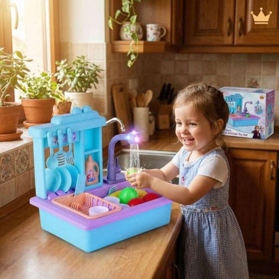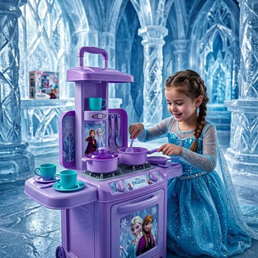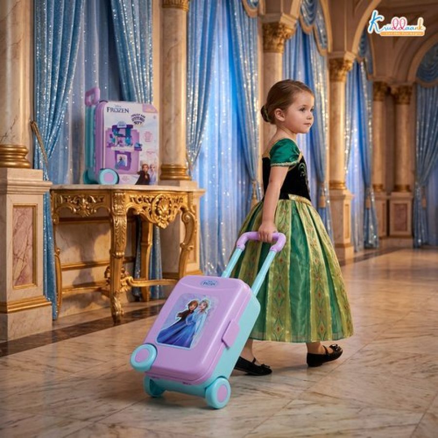 Kriiddaank Frozen Theme Kitchen Set for Girls - Elsa & Anna Inspired Portable 2-in-1 Playset with Trolley Bag, Lights, Music & 20 Accessories - Pretend Play Cooking & Baking Toy for Kids 3+ Years