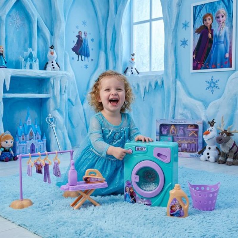 Kriiddaank Frozen Theme Washing Machine Toy Set for Kids - 11-Piece Interactive Disney Magic Home Appliances Pretend Play for Toddlers - Music & Educational Role Play Laundry Set - Ages 3+