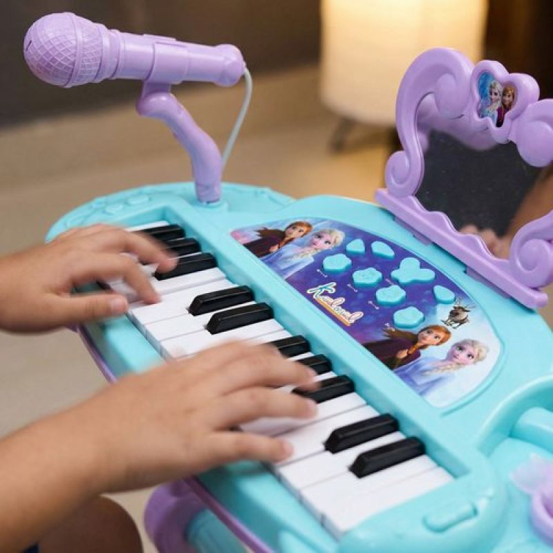 Frozen-Themed Little Pianist Keyboard with Microphone & Stool - 25 Built-in Tunes, Karaoke Function, MP3 Connectivity - Educational Musical Toy for Girls & Toddlers Age 3+ (Turkish Blue)