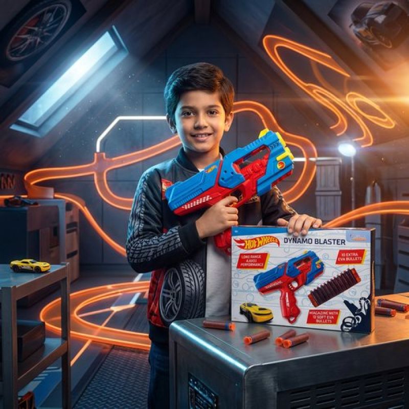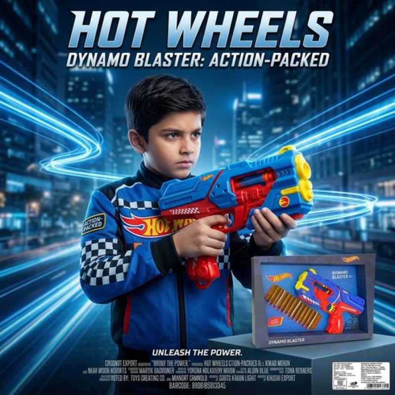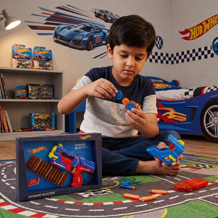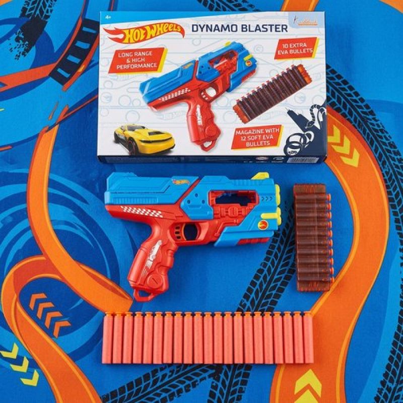 Ignite your child's imagination and active play with the Hot Wheels Dynamo Blaster. This high-performance toy gun is engineered for kids who love action and adventure. Featuring a striking blue design, the Dynamo Blaster comes equipped with a specialized 12-dart cartridge and a total of 22 soft foam bullets, ensuring the fun never stops. Its ergonomic design is perfect for children aged 4 and above, providing a comfortable grip and a smooth-pull trigger that enhances motor skills. Whether engaging in a friendly backyard competition or practicing target shots indoors, the soft foam darts ensure a safe experience that won't cause injury or damage to furniture. No batteries are required, making this a reliable and durable addition to any toy collection. Give the gift of interactive role-play and physical activity with this authentic Hot Wheels blaster set.