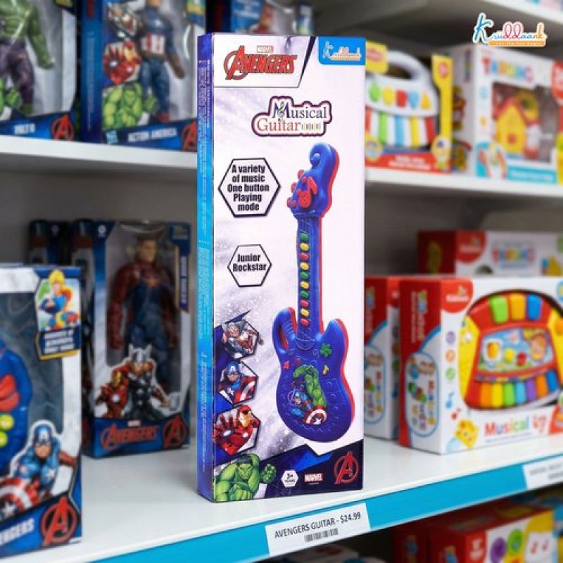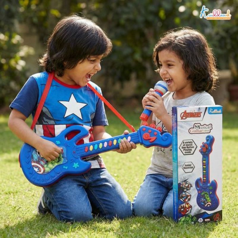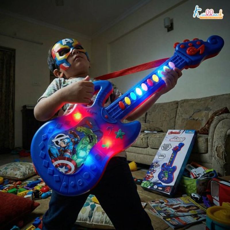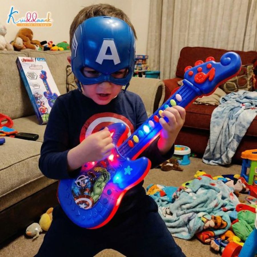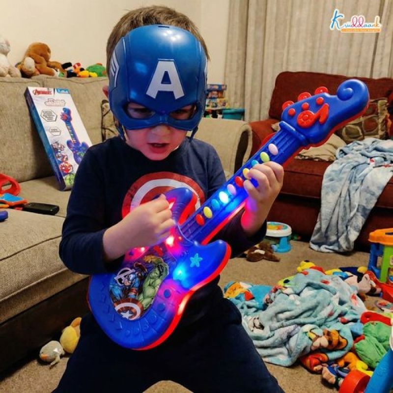 Marvel Avengers Theme Musical Guitar for Kids - Superhero Electric Toy with Lights & Sound, Battery Operated Junior Rockstar Guitar, Red Musical Instrument for Boys & Girls Age 3+ Years
