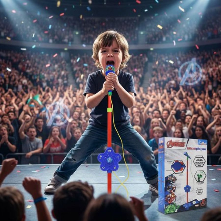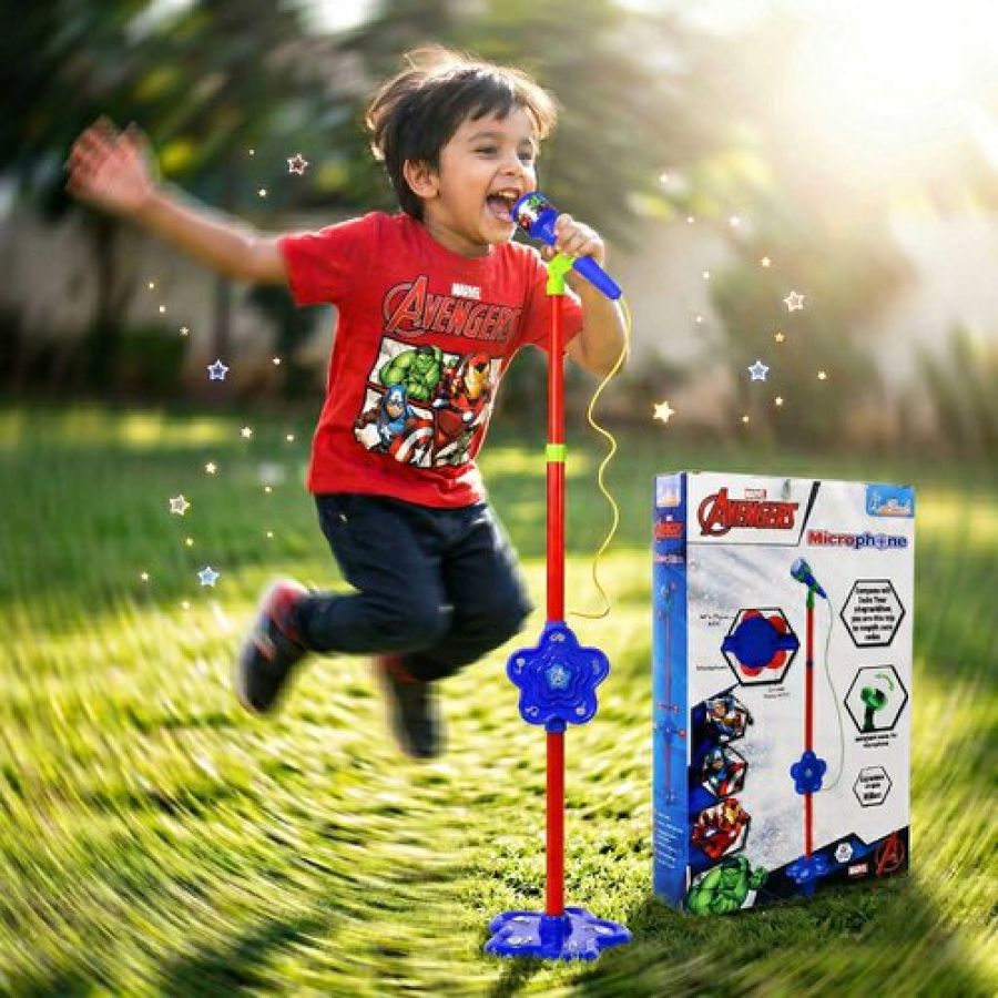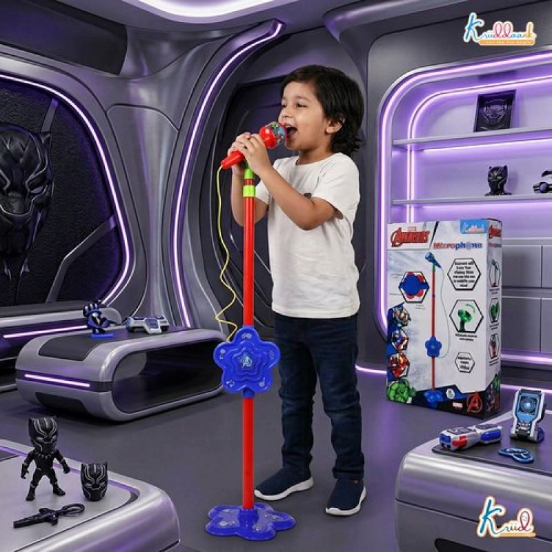 Marvel Avengers Karaoke Microphone with Adjustable Stand for Kids - Featuring Iron Man, Spider-Man & Black Panther - Bluetooth & USB Singing Toy - Musical Gift for Boys & Girls Ages 3+