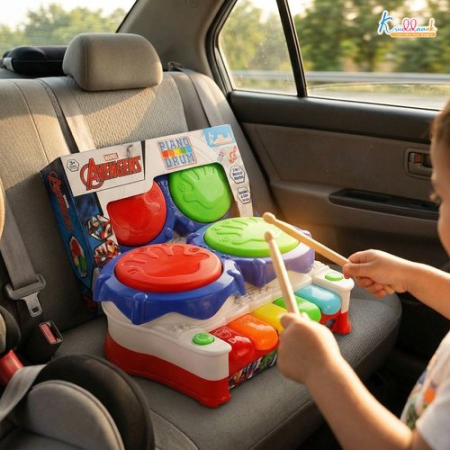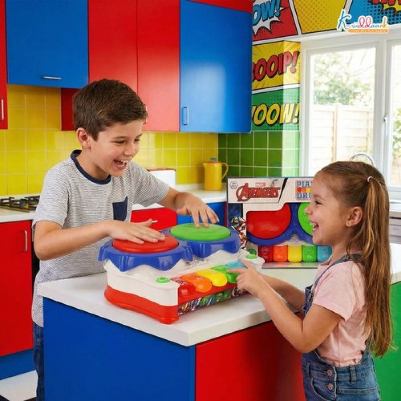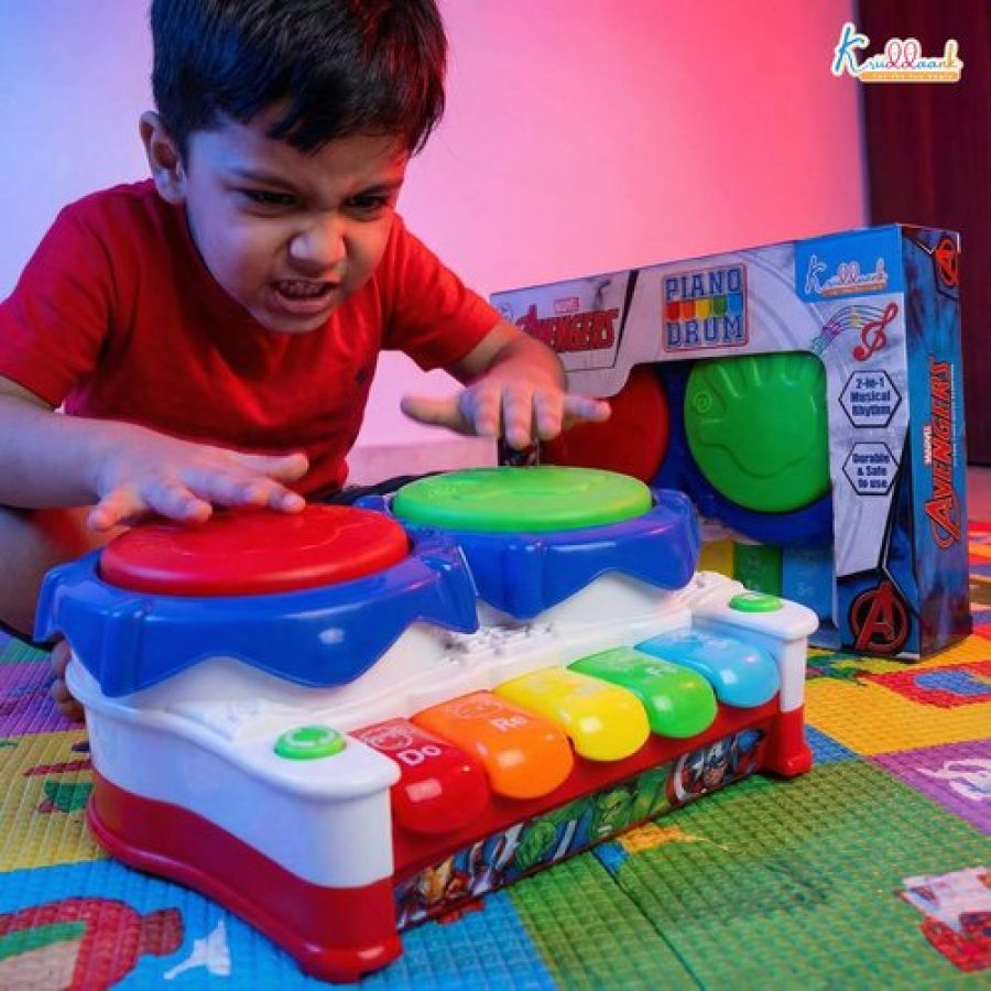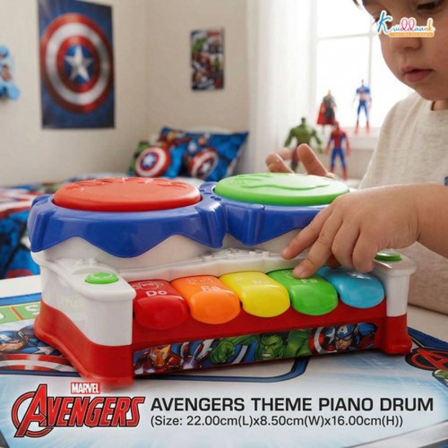 Marvel Avengers 2-in-1 Piano Drum Musical Toy for Kids | Interactive Electric Instrument with 3D Lights & Music | Educational Birthday Gift for Boys & Girls 3+ Years | Durable & Safe Play