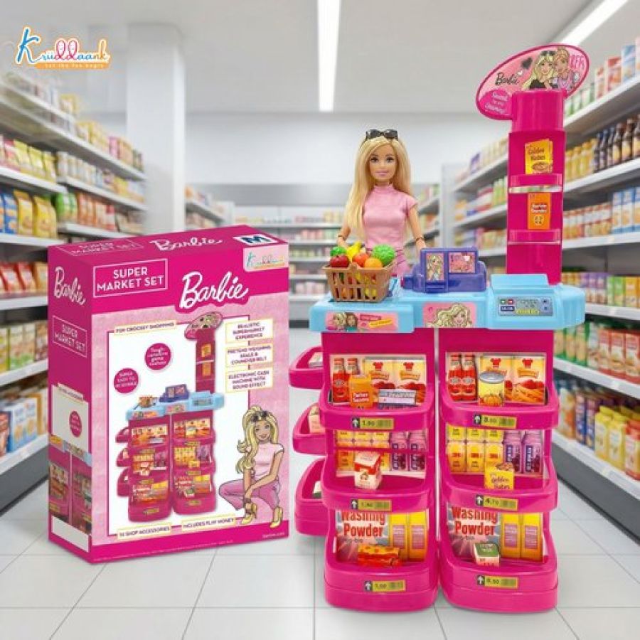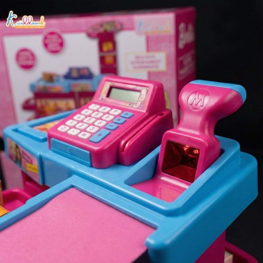 Mattel Barbie Supermarket Set with Electronic Cash Register, Scanner & 20 Accessories | Role Play Grocery Shop for Kids 5+ | Realistic Sound Effects, Conveyor Belt & Weighing Scale - Pink