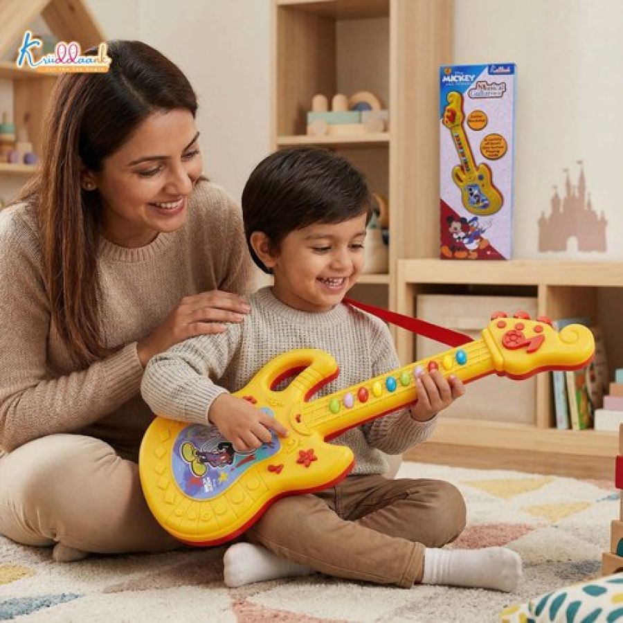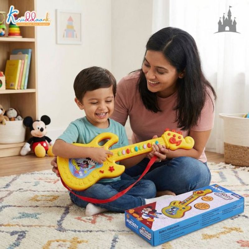 Disney Mickey Mouse Theme Musical Guitar for Toddlers & Kids | Battery Operated Sing-Along Educational Toy | Interactive Music & Sounds for Juniors (3+ Years) - Red