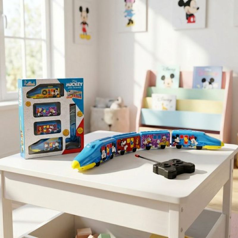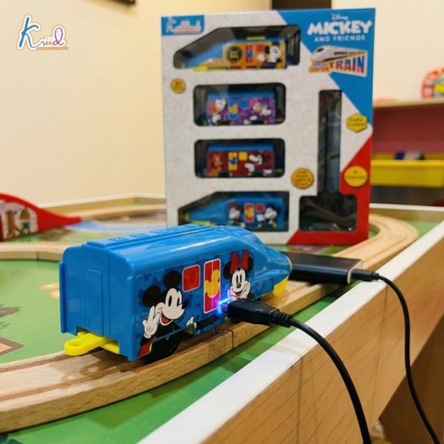 Kriiddaank Mickey Theme Remote Control Train Toy for Kids - Rechargeable EMU Express Train with LED Lights & Sounds, 4-Channel RC Railway Model, Disney Gift for Boys & Girls (Blue)