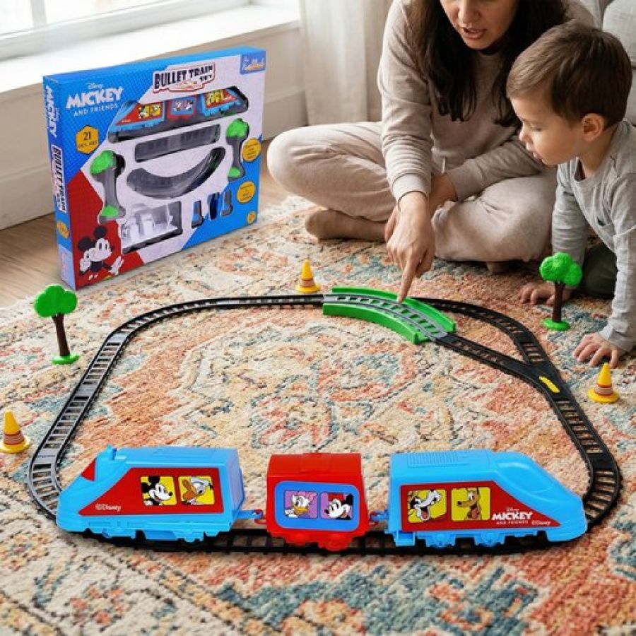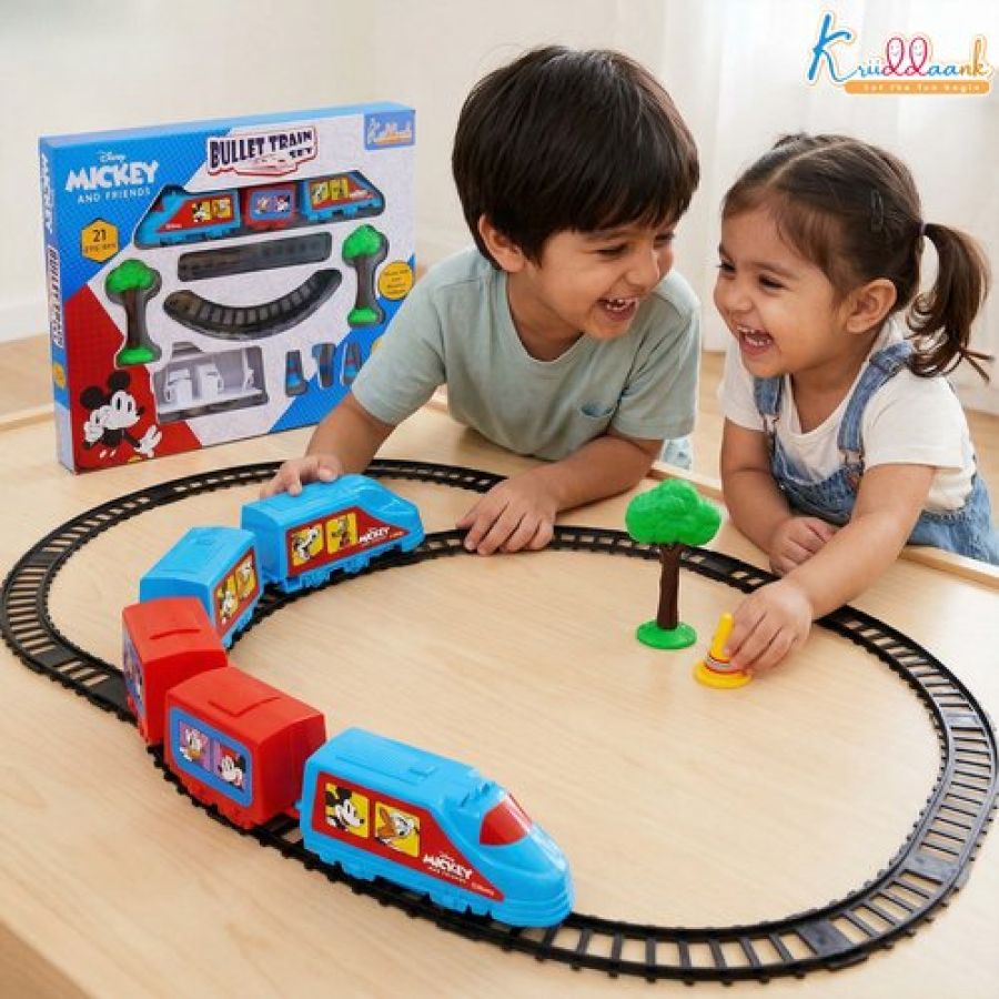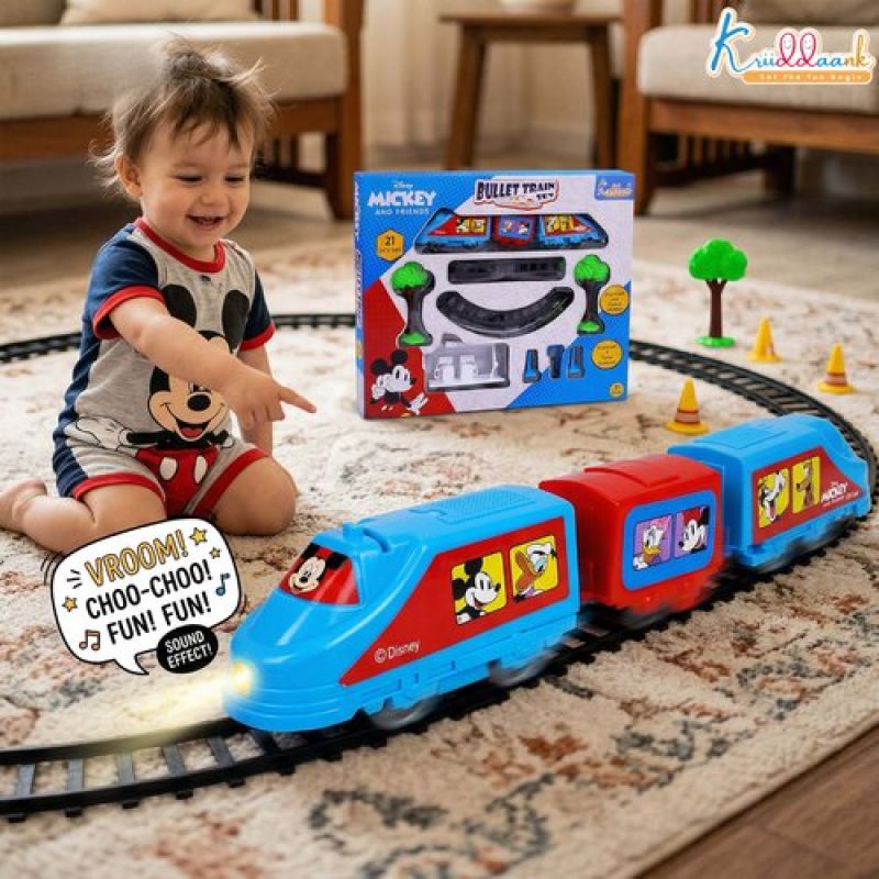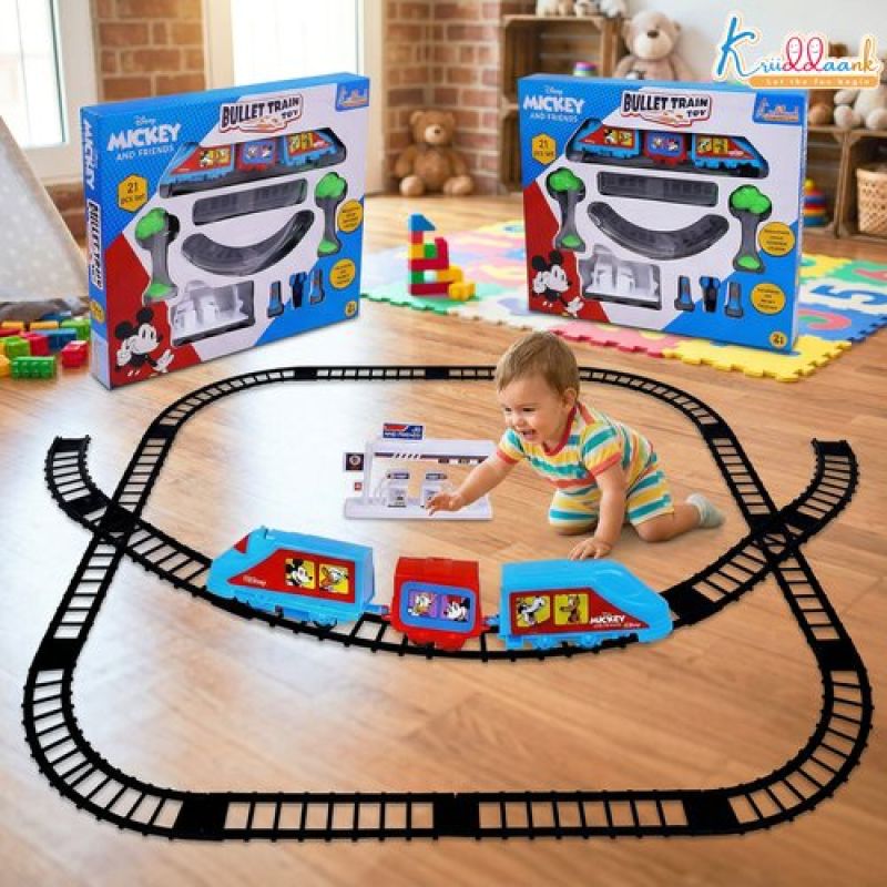 Kriiddaank Mickey Mouse Big Bullet Train Set for Kids (21 Pcs) - Educational Toy with Easy-to-Assemble Tracks & Sound Effects - Battery Operated Learning Toy for Boys & Girls, 3+ Years