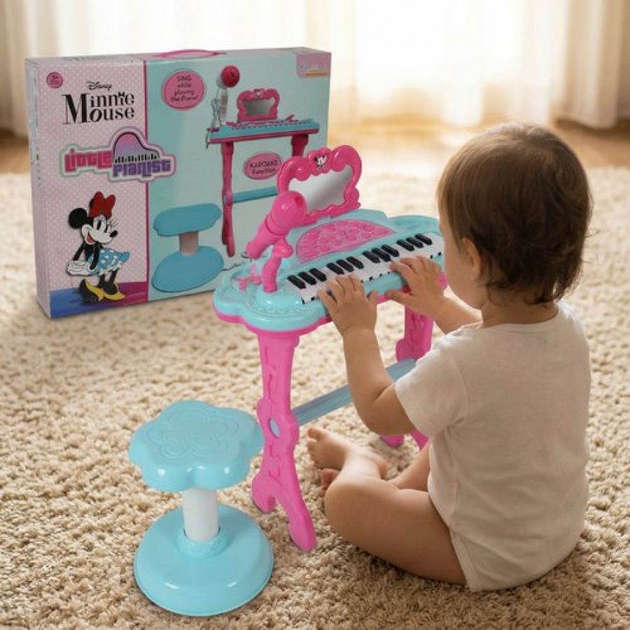 Minnie Mouse Little Pianist Keyboard for Girls � Musical Toy with Microphone, Stool & Dress-Up Accessories � 25 Inbuilt Tunes, Karaoke Mode, Battery/USB Powered � Educational Gift for Kids 3+ Years