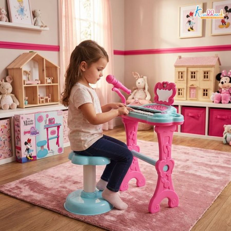 Attractive keyboard with mike and dressing accessories for girls with a pretty stool.