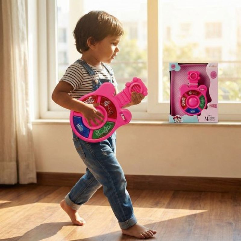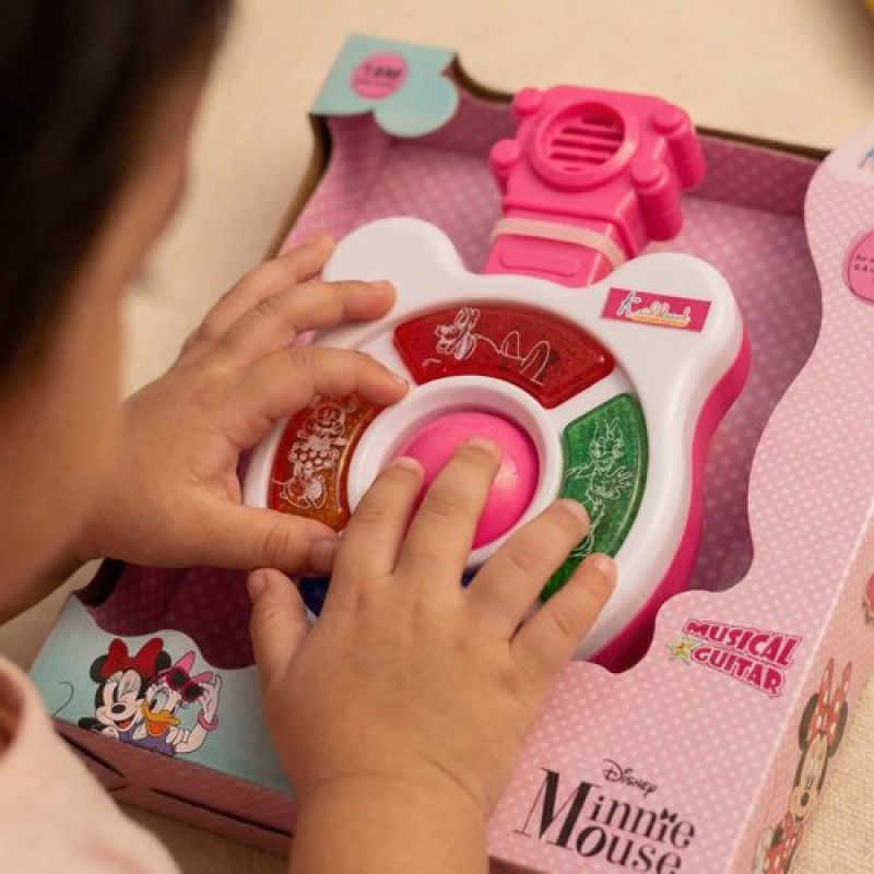 Minnie Mini Music Guitar for Kids - Portable Musical Toy with Interactive Buttons & Sound Effects, Battery Operated Educational Instrument for Toddlers, Durable Pink Guitar Toy (Ages 3+)