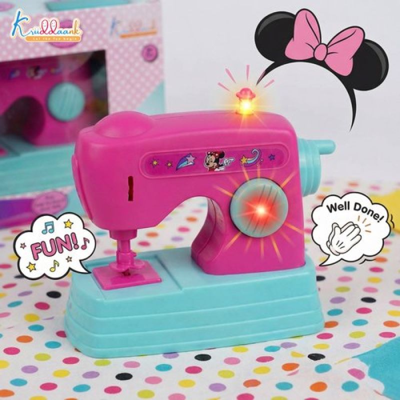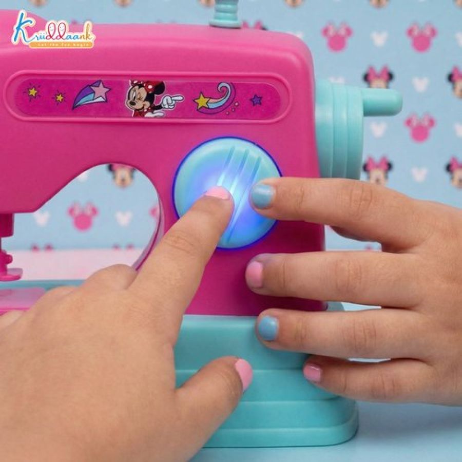 Kriiddaank Minnie Mouse Theme Mini Sewing Machine Toy for Kids 3+, Pink Educational Pretend Play Household Toy with Interactive Buttons, Battery Operated Role Play Toy for Girls