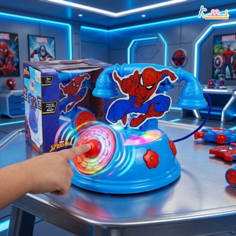 Kriiddaank Spiderman Talking Telephone Toy for Kids - Interactive Musical Pretend Play Phone with Sounds, Educational Learning Toy for Boys & Girls 3+ Years, Durable & Portable Design, Blue