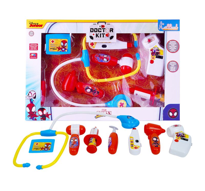 Spider-Man Doctor Kit for Kids - 8-Piece Marvel Medical Playset with Electronic Stethoscope, Lights & Heartbeat Sounds - Educational Pretend Play Roleplay Toy for Toddlers and Children Ages 3+