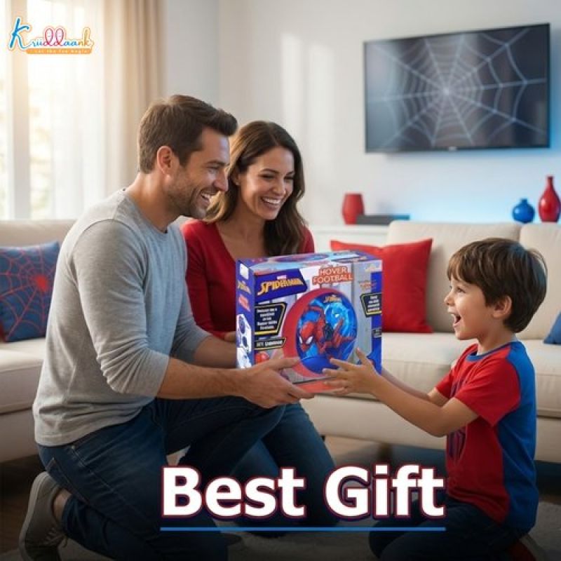 Spiderman Hover Football Toy for Kids - Air Power Indoor Soccer Ball with LED Lights & Soft Foam Bumper - Safe Floor Glider for Home Play - Superhero Themed Birthday Gift for Boys and Girls 3+
