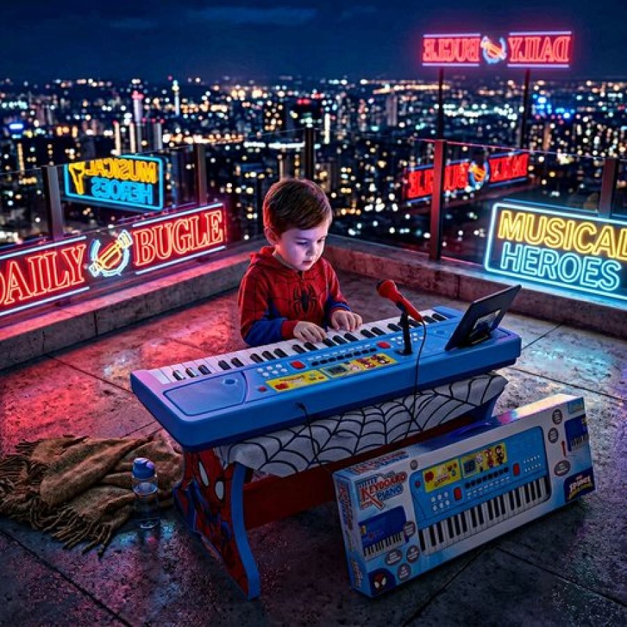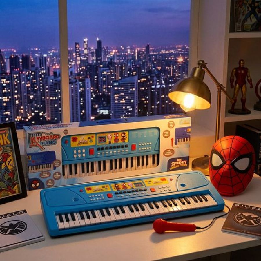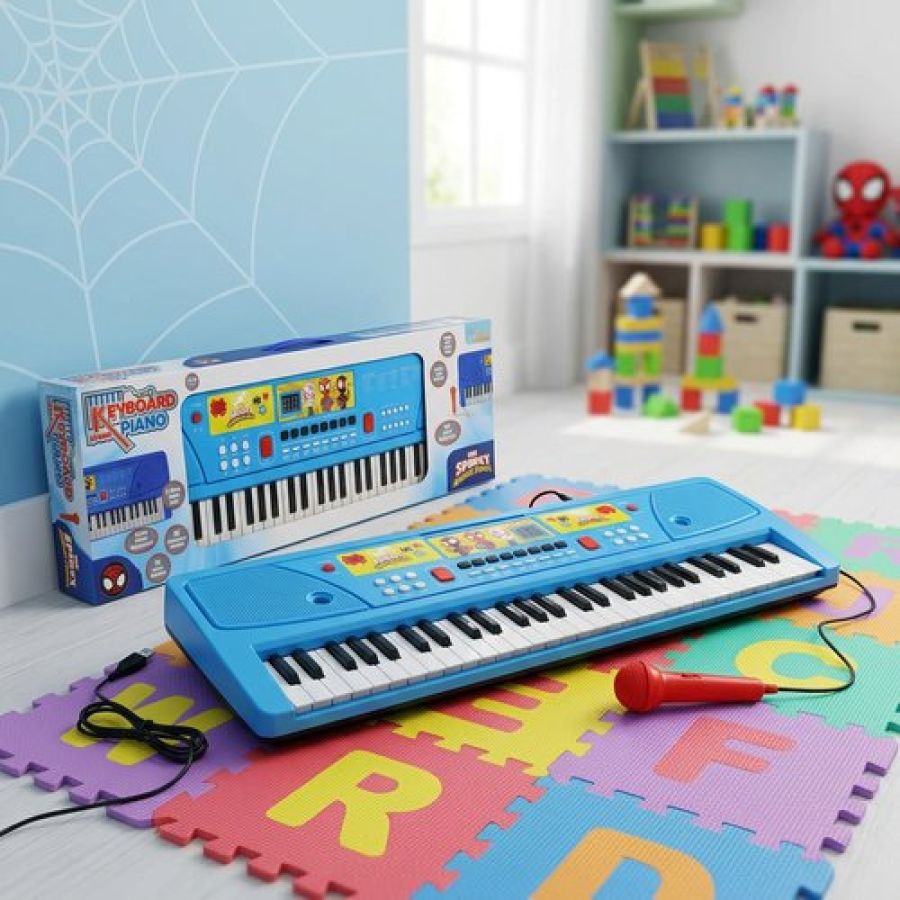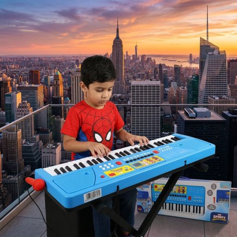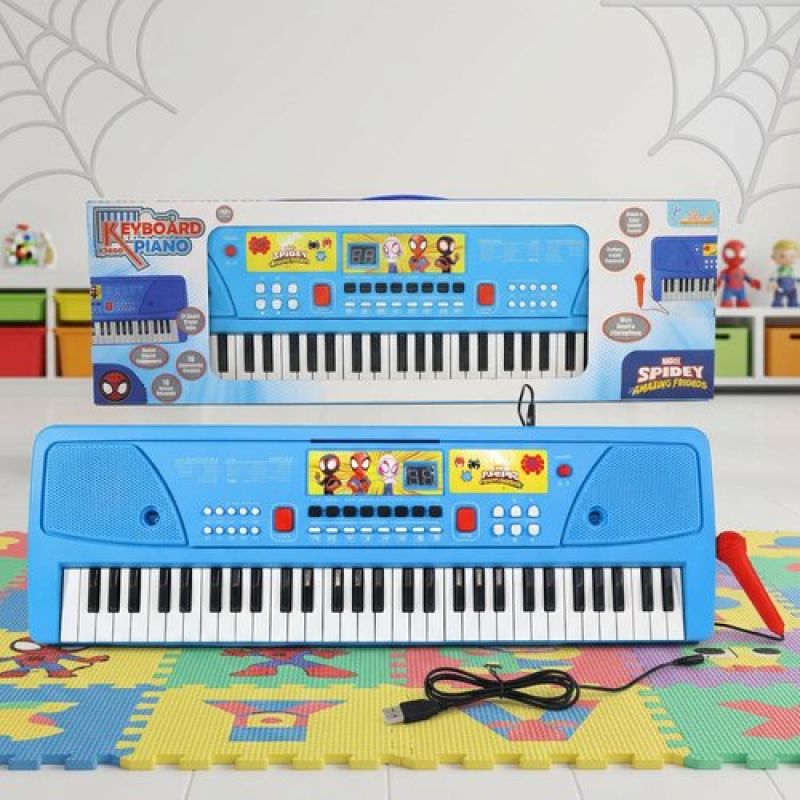 Spiderman Keyboard Piano for Kids - 61 Key Portable Digital Organ with Microphone, USB Power & Digital Screen - 17 Instrument Sounds & 10 Rhythms - Educational Musical Gift for Boys 3+ Years