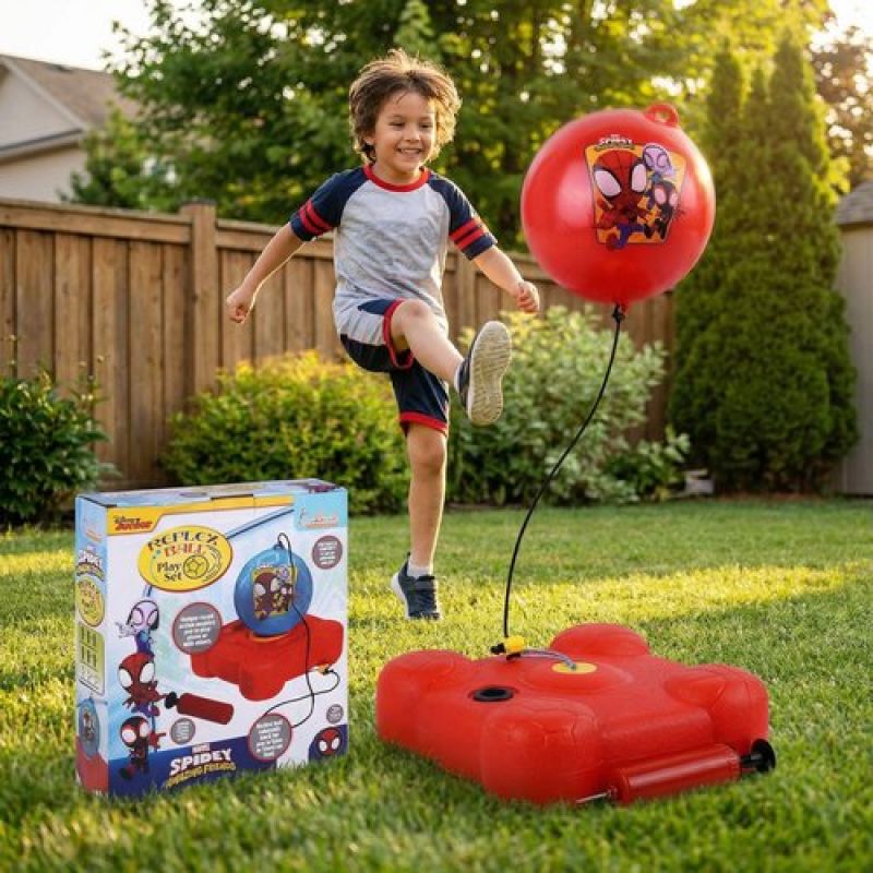 Spiderman Reflex Soccer Ball Solo Training Kit for Kids | Indoor & Outdoor Football Trainer with Recoil Action | Marvel Superhero Sports Toy for Boys 3+ Years | Portable Skill Building Set