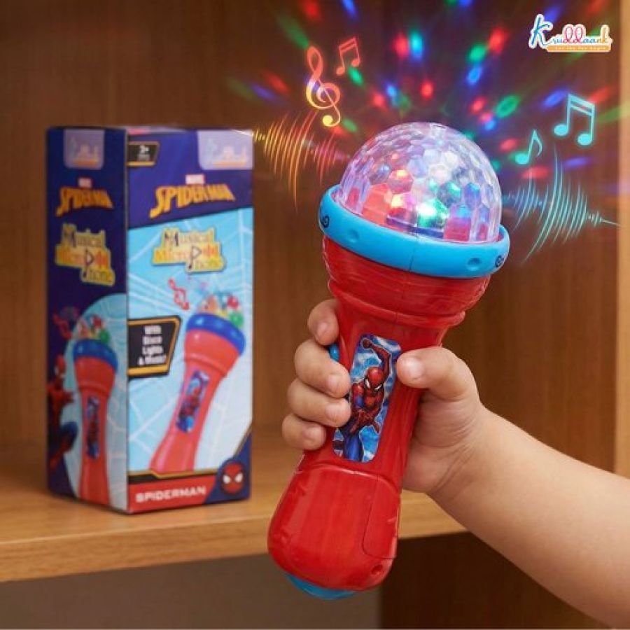 Kriiddaank Spiderman Musical Karaoke Microphone for Kids with Rotating Disco Lights & Projector - Educational Musical Toy for Boys & Girls 3+ Years, Sound Effects, Battery Operated, Blue