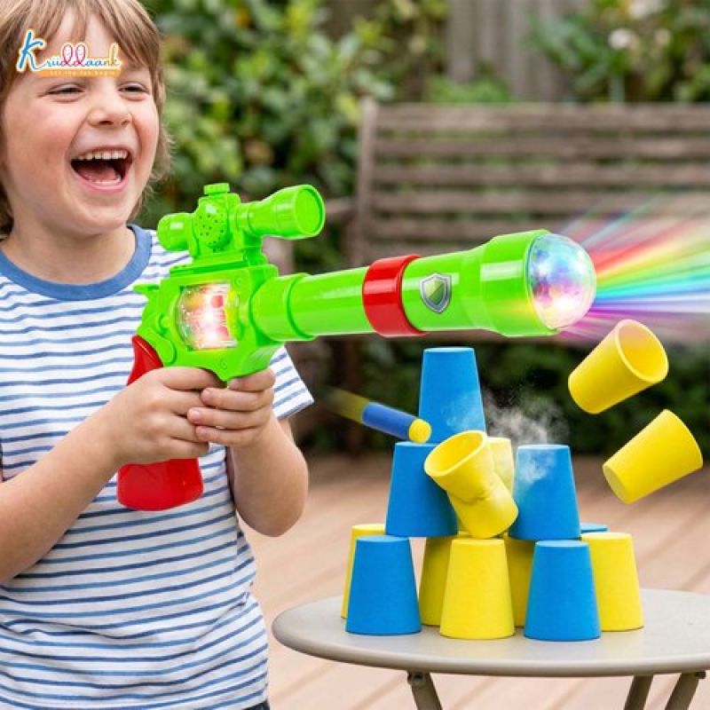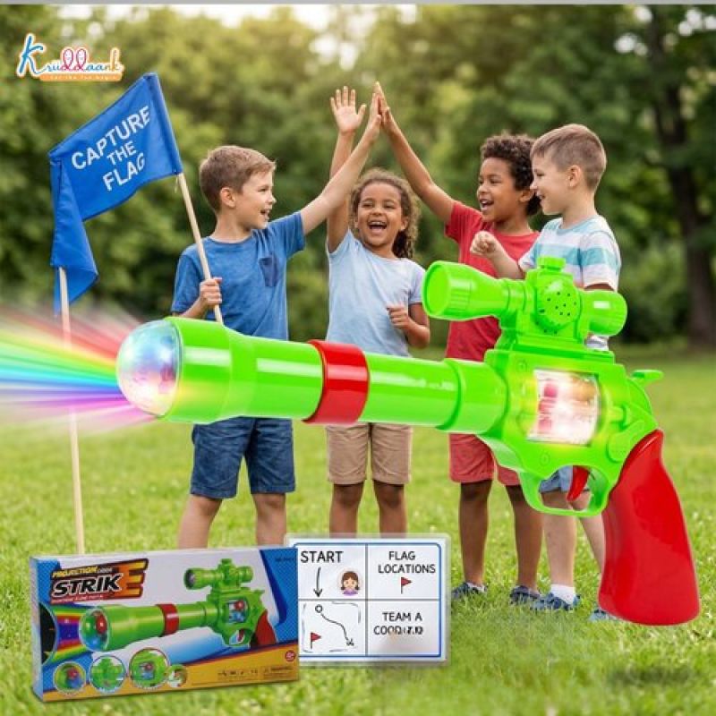 Elevate your child's playtime with the Kriiddaank Strike Gun Toy, a premium soft bullet blaster designed for ultimate safety and excitement. This multi-functional toy combines the thrill of a foam blaster with the sensory delight of a musical gun. Featuring realistic shooting sound effects, flashing lights, and a unique projection light with spinning snowflake patterns, it offers an immersive 360-degree play experience. Made from high-quality, durable plastic and finished in vibrant multicolor, it is lightweight and ergonomically sized for kids aged 3 and above. Whether they are engaging in a friendly indoor battle or practicing their aim, this battery-operated playset ensures hours of active, imaginative fun. Give the gift of adventure and help your child develop essential motor skills with the Kriiddaank Strike Gun.