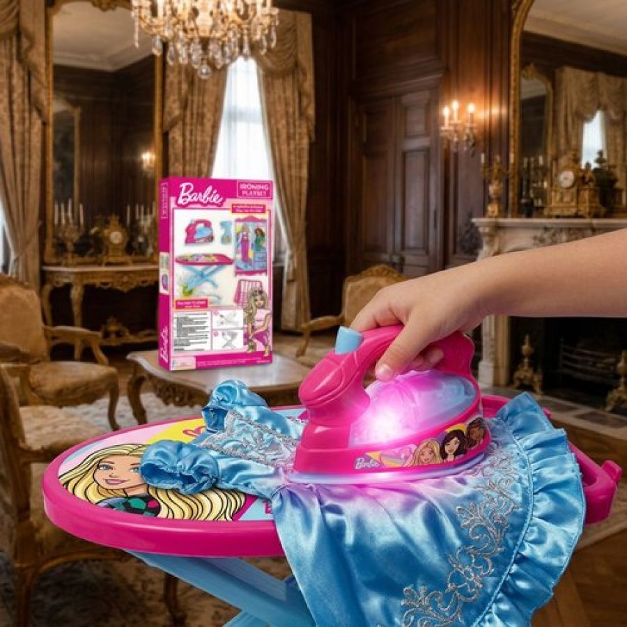 Barbie Iron Playset for Girls with Realistic Light and Sound - 8-Piece Pretend Play Laundry Set with Ironing Board, Pink - For Kids Aged 3+ Years