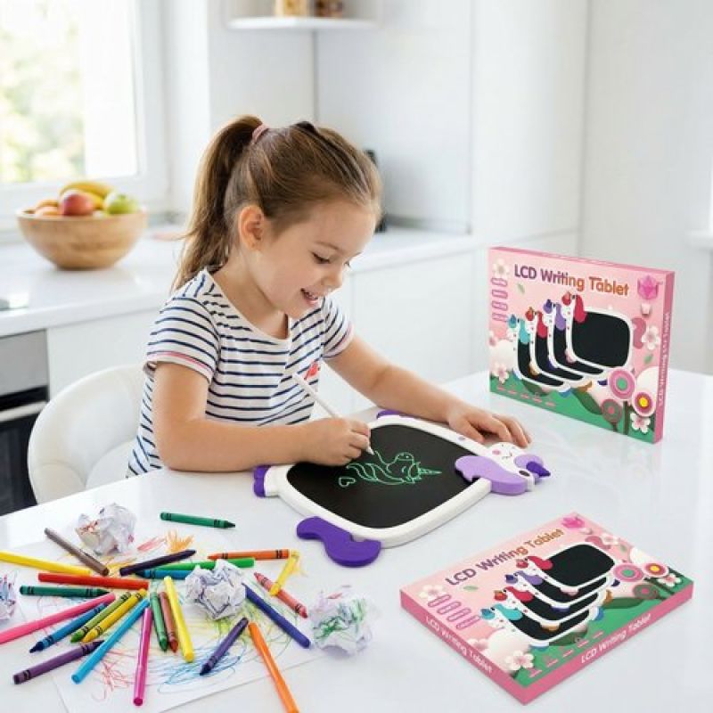 Unlock your child's creativity with the Kriiddaank Unicorn LCD Writing Magic Tablet. This 8.9-inch electronic drawing pad is the ultimate classroom essential and home learning tool for kids aged 3 to 12. Designed with a delightful unicorn character, it serves as a digital magic slate where children can doodle, paint, and practice their handwriting without the mess of crayons, markers, or chalk. Our eco-friendly device is ultra-slim, lightweight, and incredibly portable, making it the perfect travel game for long car journeys or flights. Featuring a high-sensitivity screen that mimics the feel of pen on paper, a one-touch erase button, and a safety lock to save progress, it offers a frustration-free experience for young artists. Say goodbye to wasted paper and hello to hours of screen-free educational fun. Whether it�s for preschool practice or creative graffiti, this magic tablet is a high-quality gift that inspires imagination.