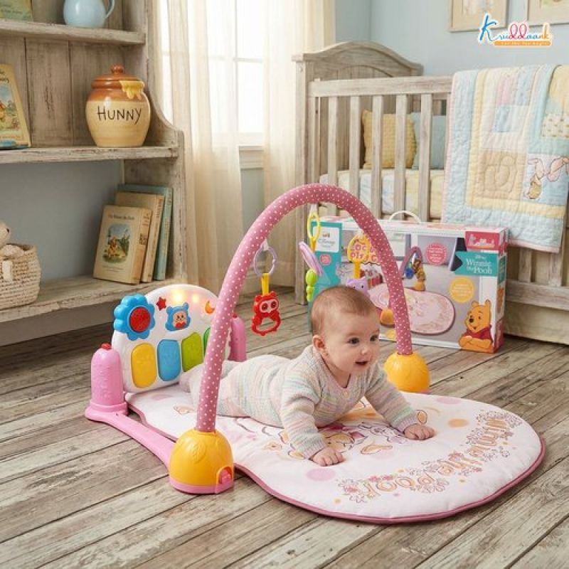Winnie The Pooh Baby Gym - Activity Musical Mat with Kick & Play Piano, Ultra-Comfort Cushioned Playmat, Rattle & Teether Toys for Infants & Toddlers, Light & Sound Educational Toy